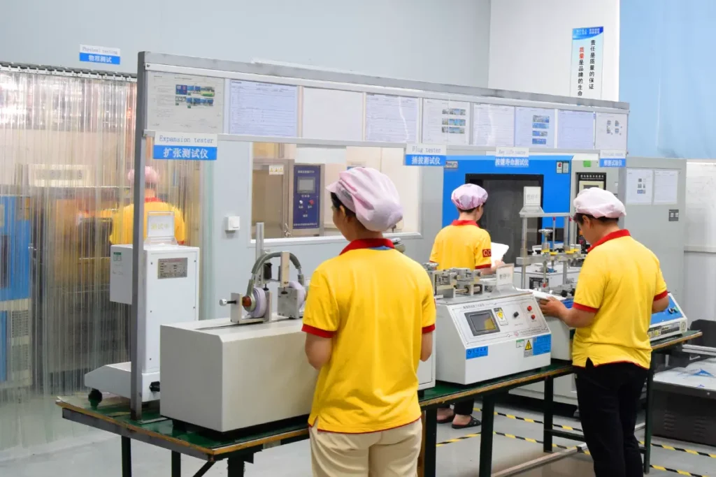 Every batch goes through IQC (Incoming Quality Control), where materials are checked against engineering standards.